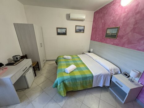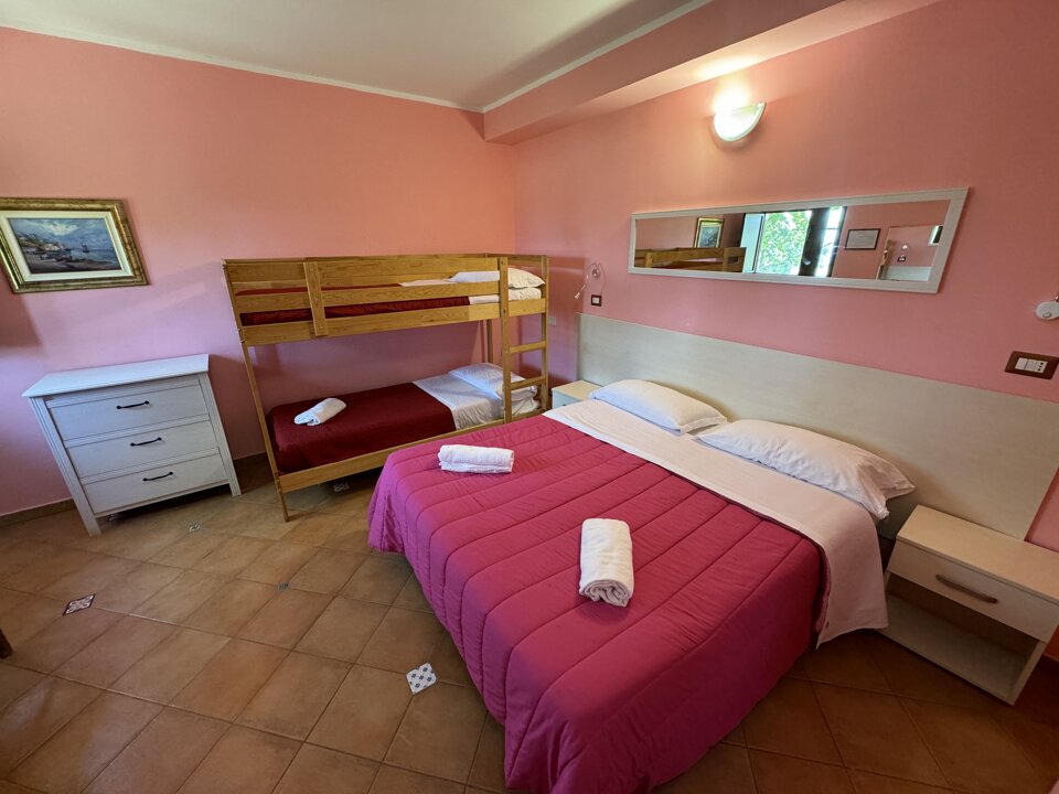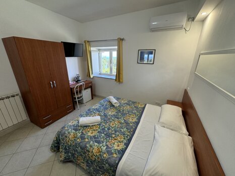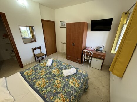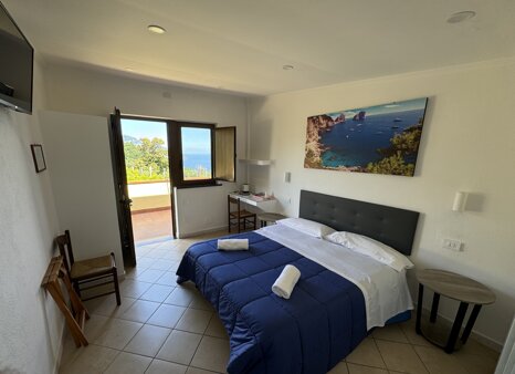 Le camere da letto sono arredate con stile semplice e sobrio, accostandosi linearmente allo stile della struttura, tra alberi di ulivo ed agrumi, la tranquillità del luogo ne fa da padrone. Da alcune camere è possibile ammirare lo splendore del Golfo di Salerno, lo sguardo si perde lungo l’orizzonte che costeggia la costiera amalfitana, quasi come si si potesse toccare il promontorio vicino Positano… Sul lato destro si ammirano le isole de Li Galli, che aspettando sera fanno da contrasto al luccichio del mare durante il tramonto. Le stanze da letto, matrimoniali, triple o familiari sono tutte provviste di bagno privato con doccia, terrazzino, TV Digitale WiFi gratuito. Servizi offerti: